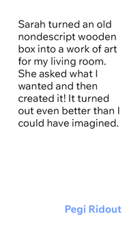 Join my email list to hear about upcoming art workshops, sales and special offers, or news about my shows, events and public art projects.